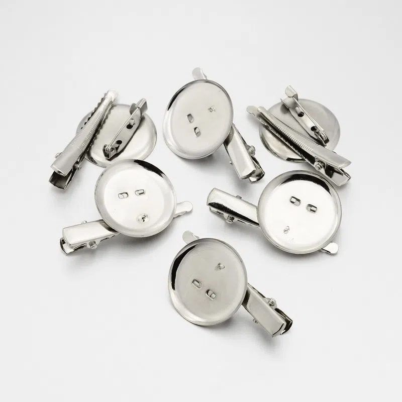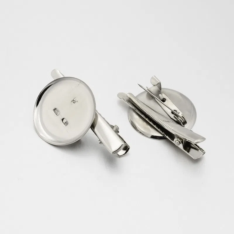 Baza brosa 2 in 1, cu platou, culoare - argintiu inchis. Poate fi folosita atat ca agrafa cat si ca brosa.