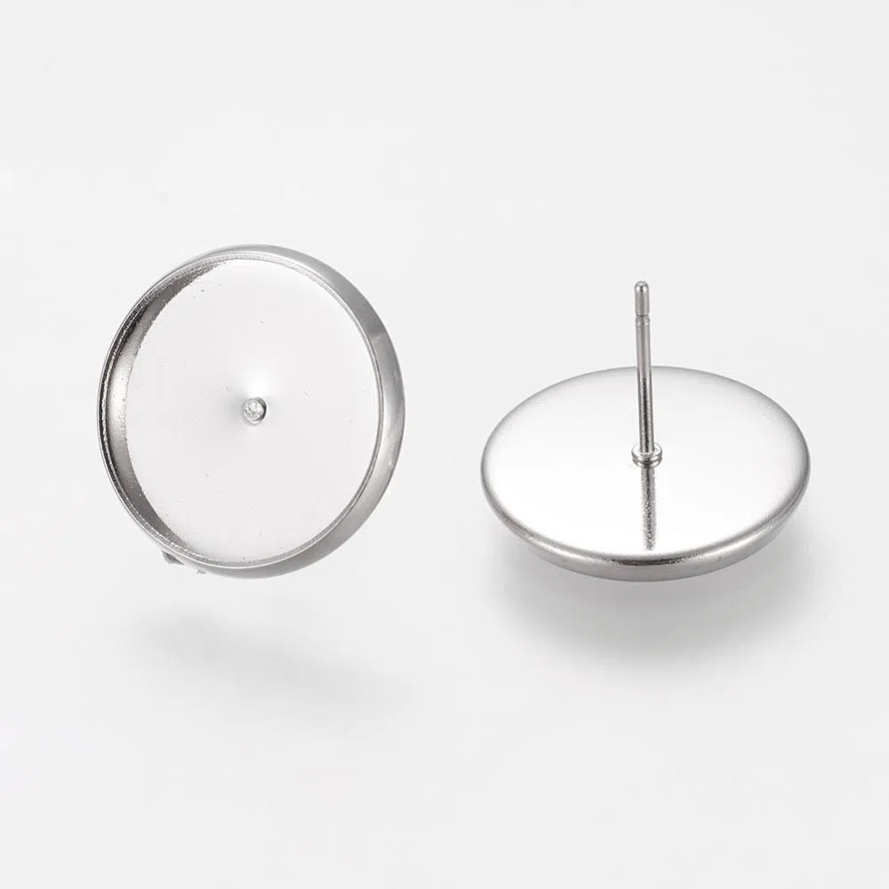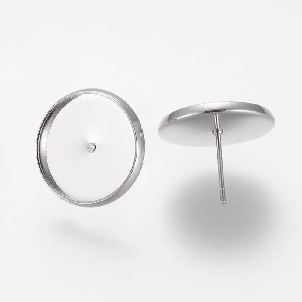Baza cercei argintiu inchis, cu platou cabochon - 14 mm.