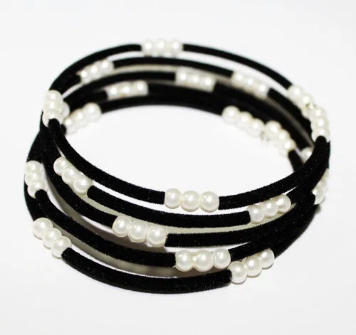 Bratara este realizata pe sarma cu memorie, snur de catifea neagra si perlute din sticla, ivory.