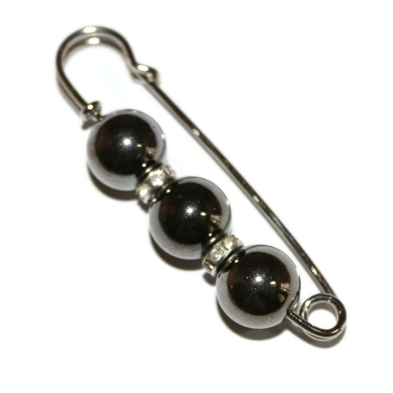Brosa tip ac de sigurata cu margele acrilice de culoare gri inchis si accesorii metalice argintii.