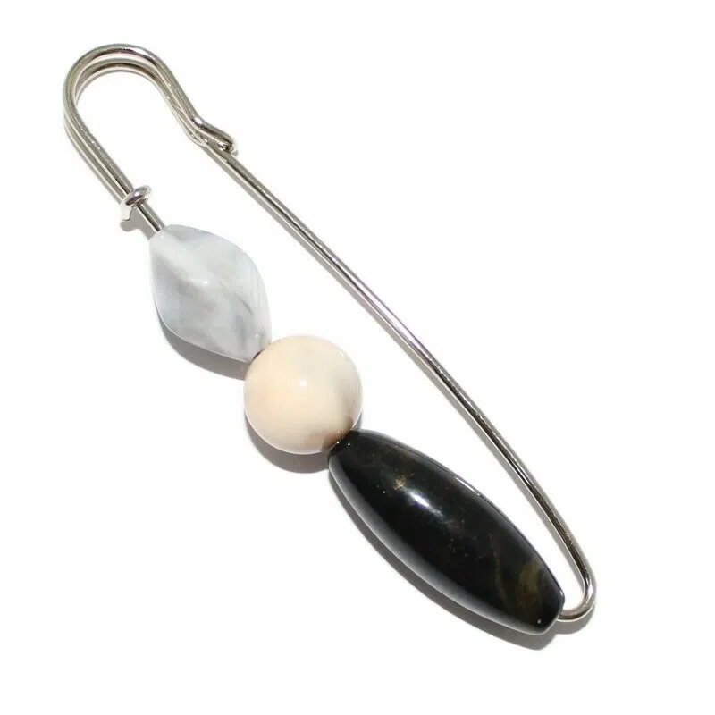 Brosa tip agrafa cu margele acrilice.
