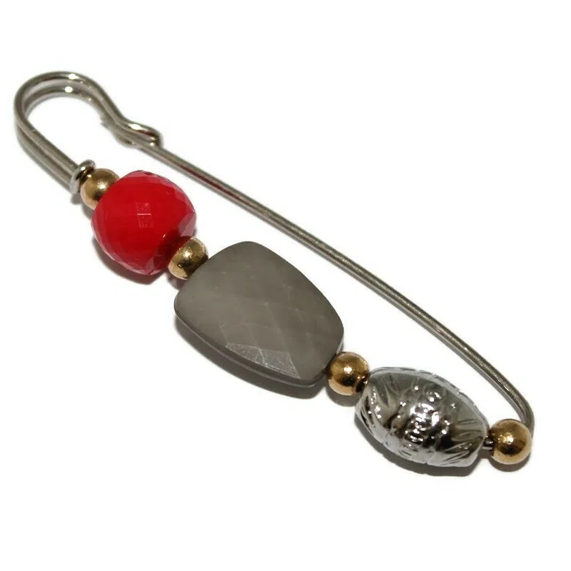 Brosa tip agrafa cu margele acrilice.