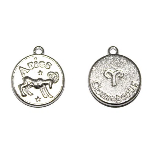 Charm zodia - Berbec, metalic, argintiu, dimensiune - 17 mm, grosime - 2 mm, gaura - 1 mm.