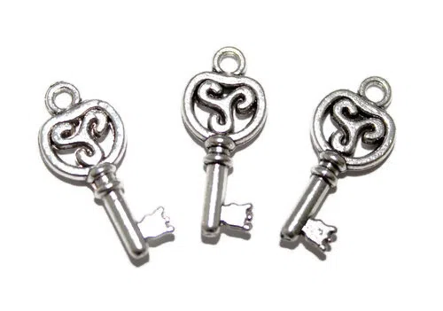 Charm cheia inimii, argintiu inchis, dimensiune 22 x 10 mm, grosime - 3.5 mm, diametru gaura - 1.5 mm.