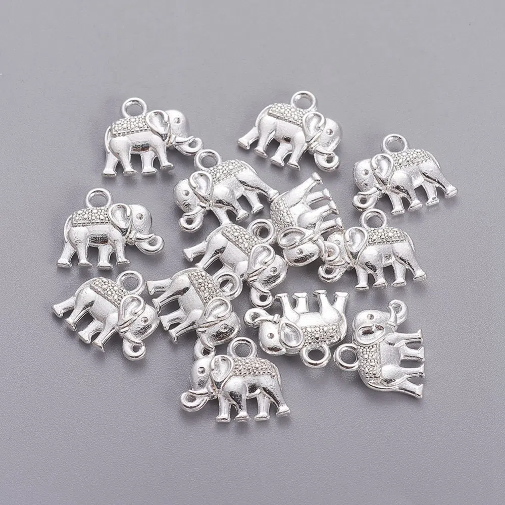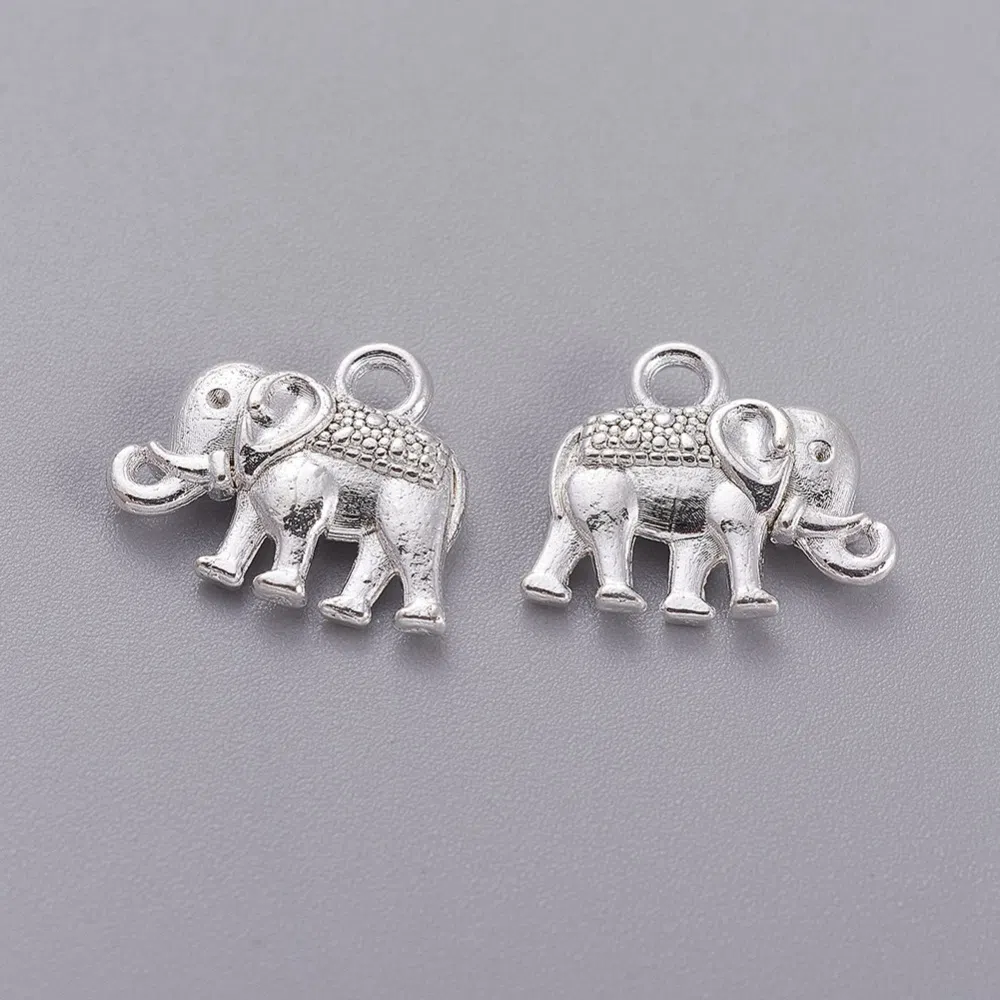Charm elefantel, metalic, argintiu, dimensiune - 14 x 12 mm, grosime - 2.5 mm, gaura - 1.5 mm.