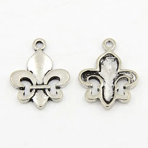 Charm "Fleur de lys", argintiu inchis, dimensiune 22.5 x 17 mm, grosime - 2 mm, diametrul gaura - 1 mm. Pretul afisat este pentru 1 buc. charm argintiu.