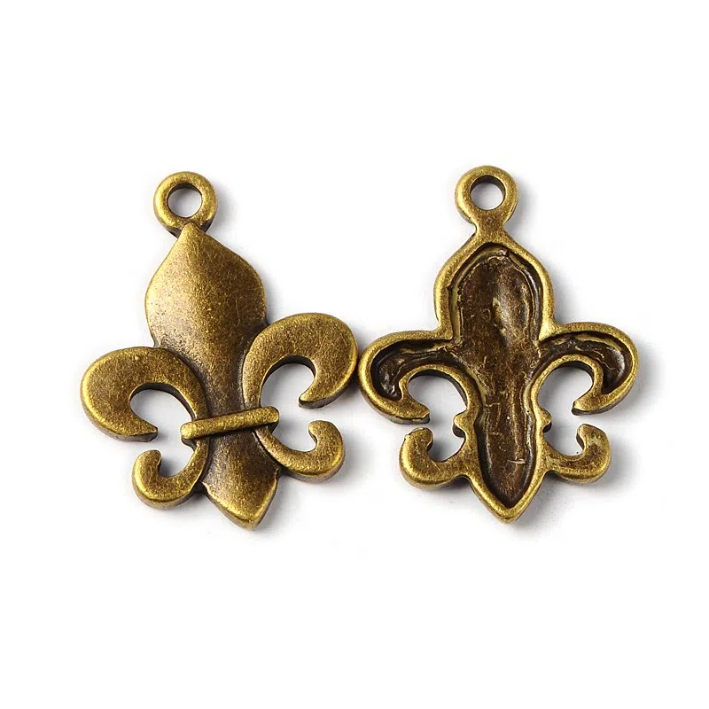 Charm "Fleur de lys", bronz antic, dimensiune 22.5 x 17 mm, grosime - 2 mm, diametrul gaura - 1 mm. Pretul afisat este pentru 1 buc. charm argintiu.