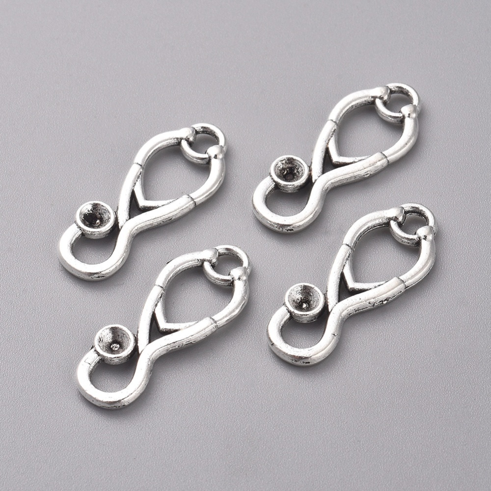 Charm metalic, stetoscop, culoare - argintiu inchis, special pentru decorarea bijuteriilor.