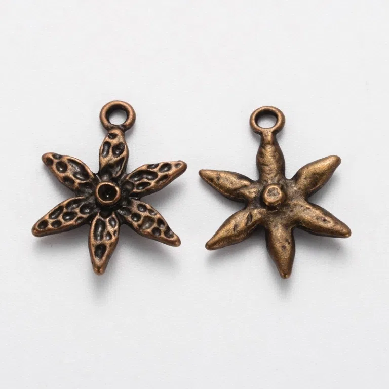 Charm "Vintage flower", bronz antic, dimensiune 20 x 15 mm, grosime - 3 mm, diametru gaura - 1 mm.