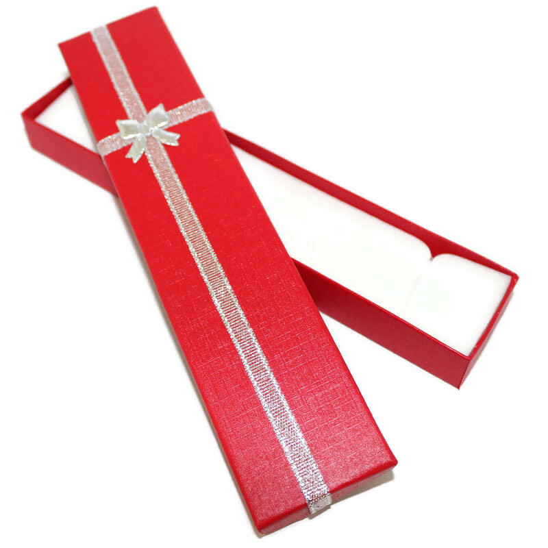 Cutie bratara, rosie cu fundita argintie.