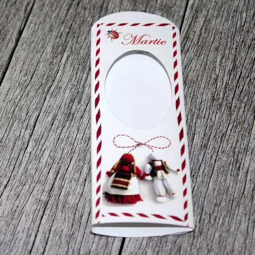 Cutie martisor - cu model - canafi, din carton, cu autoformare.