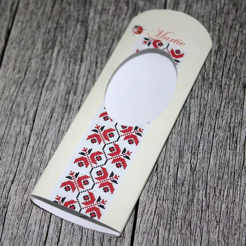 Cutie martisor - cu model ie traditionala, din carton, cu autoformare.