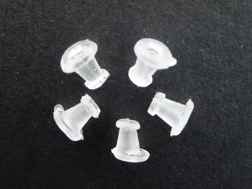 Dopuri conice din silicon pentru cercei, culoare - alb transparent.