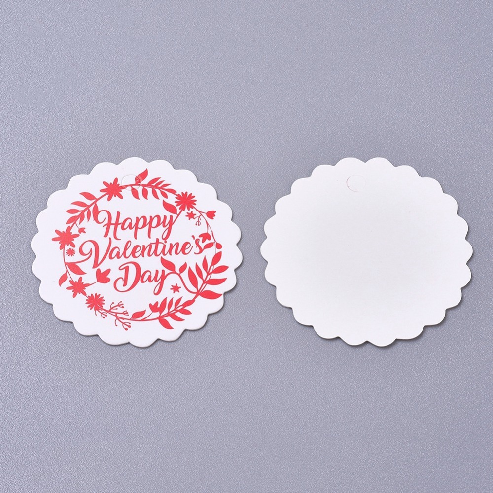 Etichete bijuterii rotunde cu ata pentru agatare si mesaj imprimat "Happy Valentine's Day", pentru bijuterii sau produse handmade.