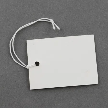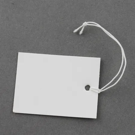 Etichete pret bijuterii dreptunghiulare din carton alb cu snur elastic. Etichetele sunt ideale pentru coliere si bratari.