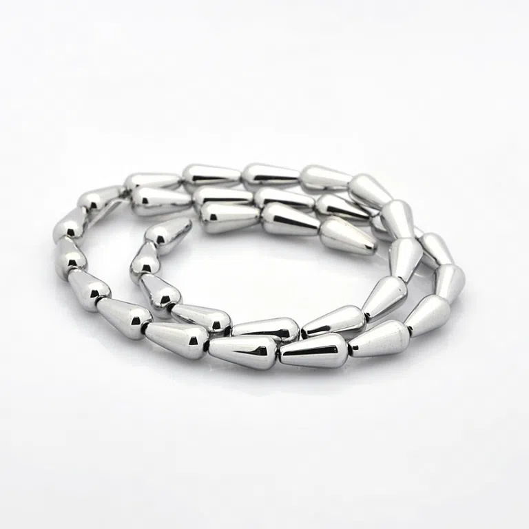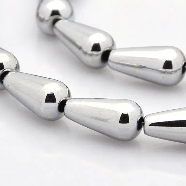 Pietre semipretioase - hematit, lacrima, argintiu, dimensiune - 16 x 8 mm, diametru gaura - 1 mm.