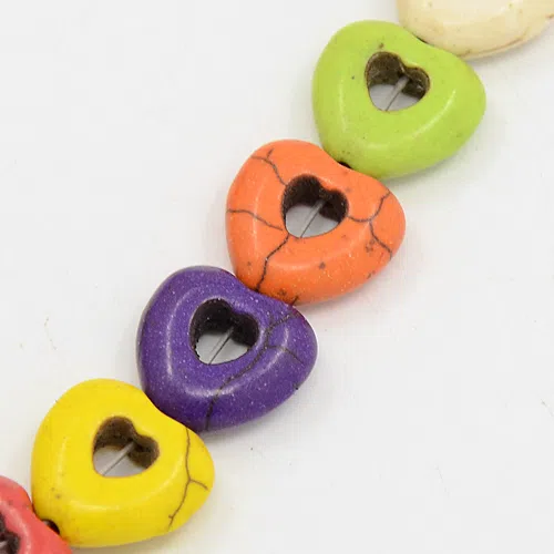 Pietre semipretioase - howlite de sinteza in forma de inimioara. Dimensiunea 15 mm, diametrul gaurarii - 0.8 mm, mix de culori.