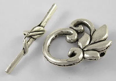 Inchizatoare toggle cu model floral, culoare - argintiu antic.