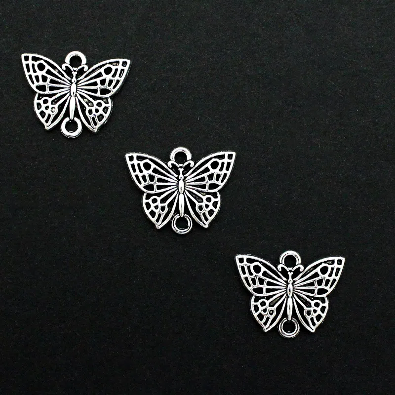 Link fluturas, culoare - argintiu inchis, dimensiune 16x20 mm, grosime - 2 mm, diametru gauri - 2 mm.