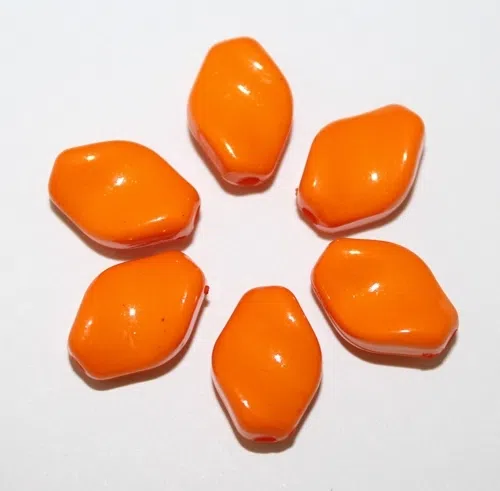 Margele acrilice romb twist. Culoare - orange. Dimensiune - 15 x 11 mm, grosime - 6 mm, diametru gaura - 2 mm.