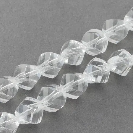 Margele de sticla fatetate, twist, culoare - alb transparent, dimensiune - 4x4 mm, diametru gaura - 1 mm.