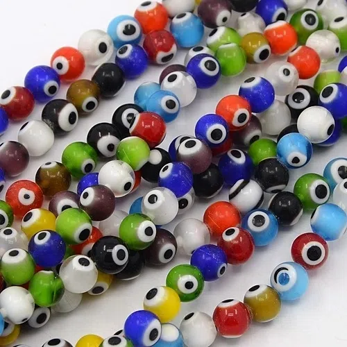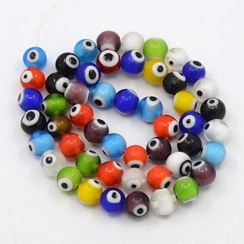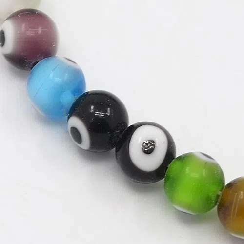 Margele lampwork - evil eye, sferice, mix de culori, diametru - 8 mm, diametru gaura - 1 mm.