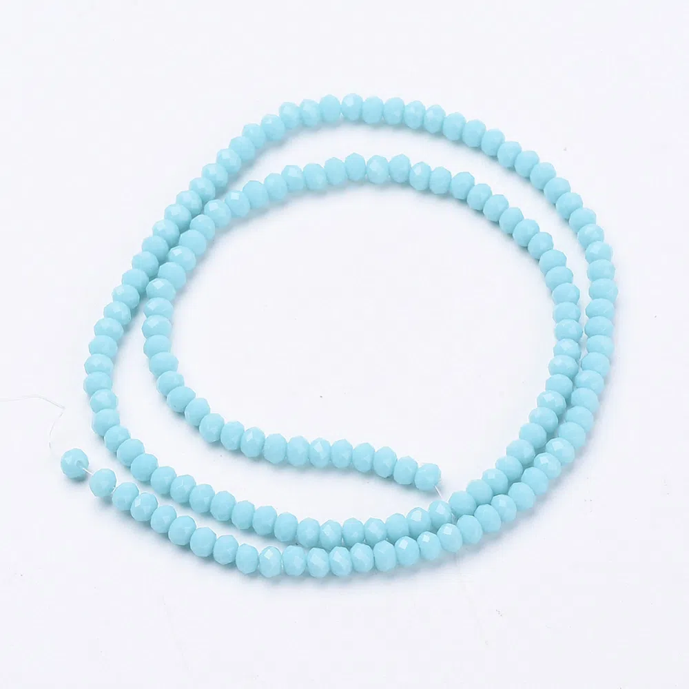 Margele de sticla abacus fatetate, culoare - imitatie jad bleu intens - 4 mm, diametru gaura - 0.3 mm.