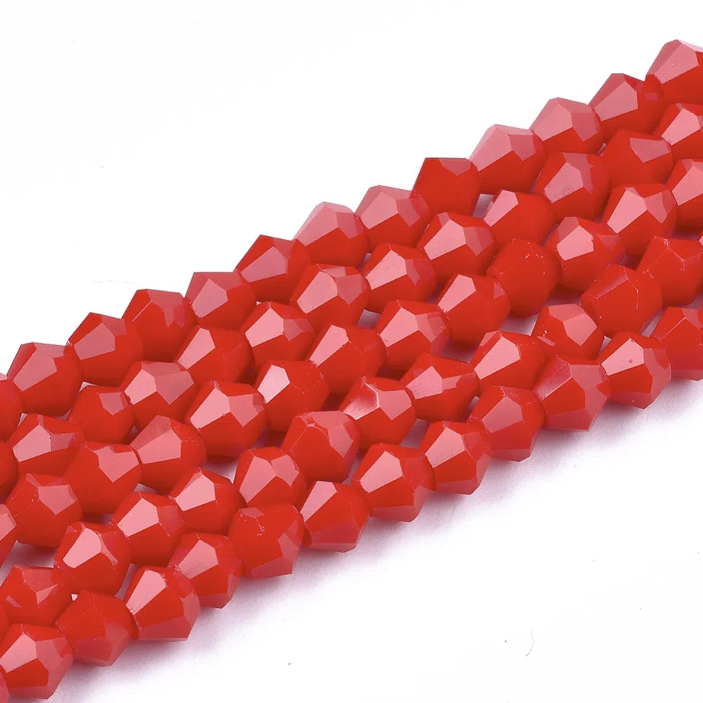 Margele sticla biconice, culoare - rosu mat. Dimensiune - 4 mm. Diametru gaura - 1 mm.