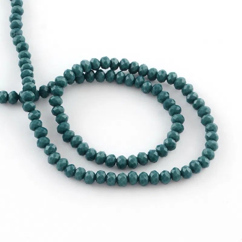 Margele de sticla fatetate, abacus, culoare - albastru cenusiu mat, diametru - 8 mm, grosime - 6 mm, diametru gaura - 1 mm.