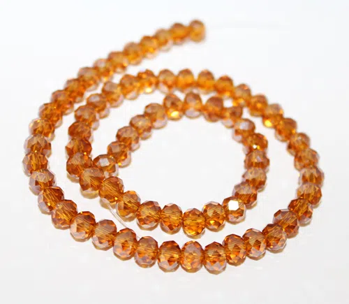 Margele de sticla fatetate, culoare - mustar cu efect AB, diametru - 8 mm, grosime - 6 mm, diametru gaura - 1 mm.