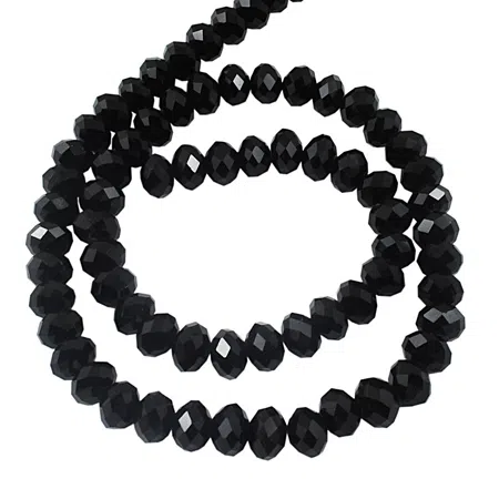 Margele de sticla fatetate, culoare - negru, diametru - 8 mm, grosime - 6 mm, diametru gaura - 1 mm.
