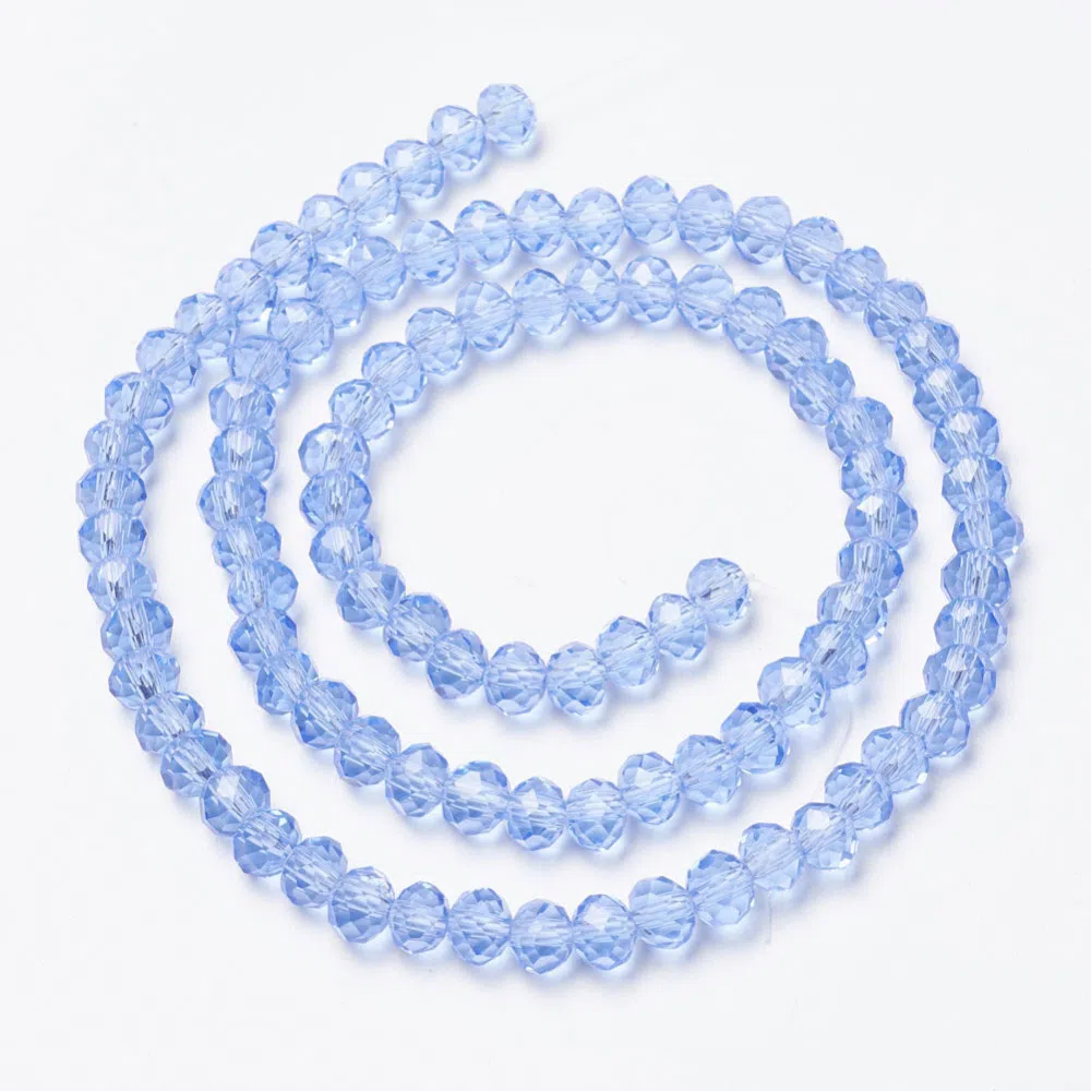 Margele sticla fatetate, abacus, culoare - albastru deschis, diametru - 6 mm, grosime - 5 mm, diametru gaura - 1 mm.