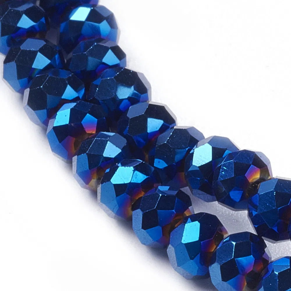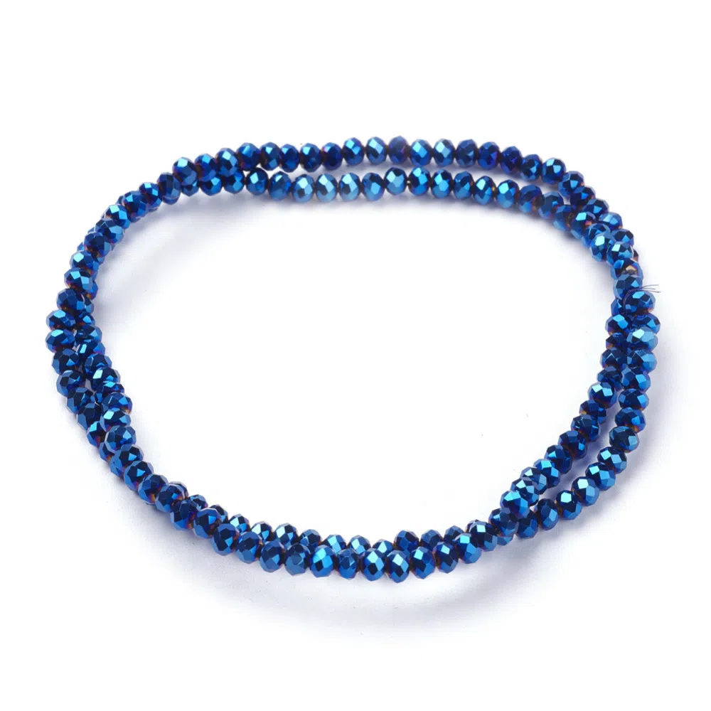 Margele de sticla fatetate, abacus, culoare - albastru electroplacat, diametru - 4 mm, grosime - 3 mm, diametru gaura - 0.5 mm.