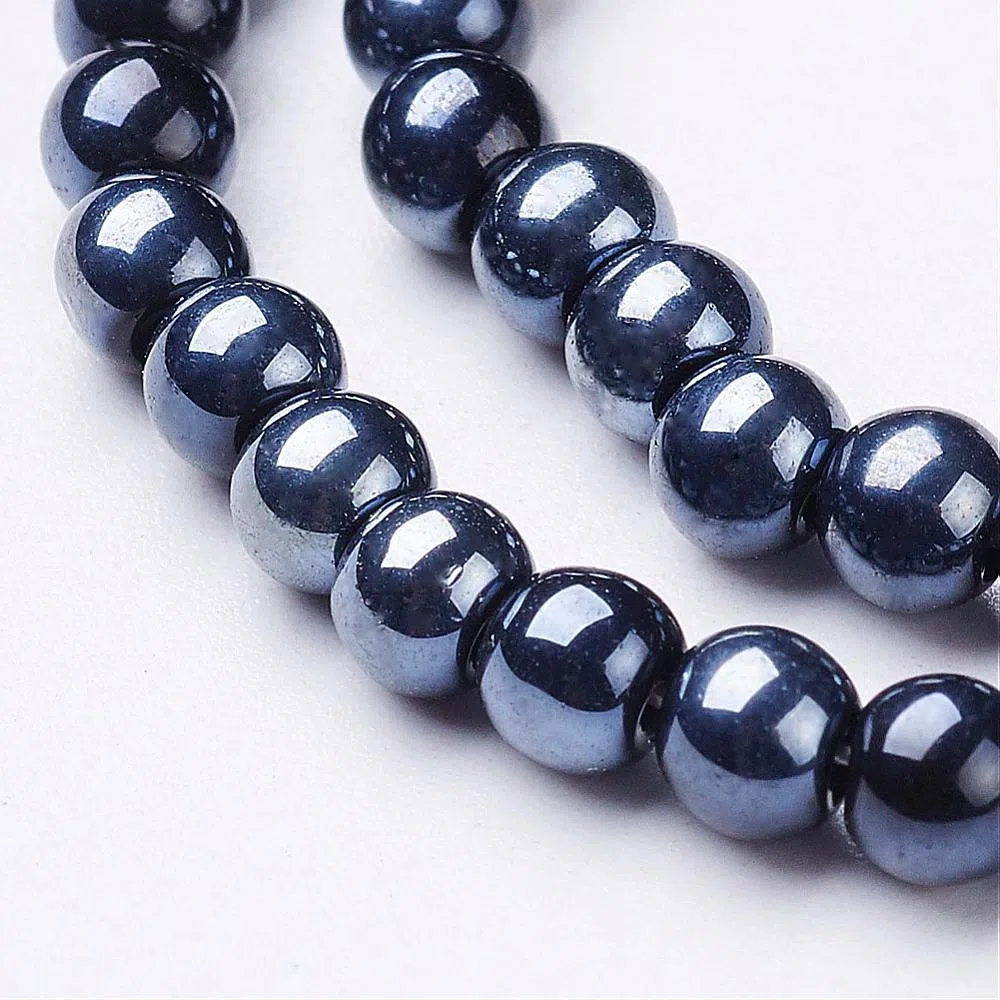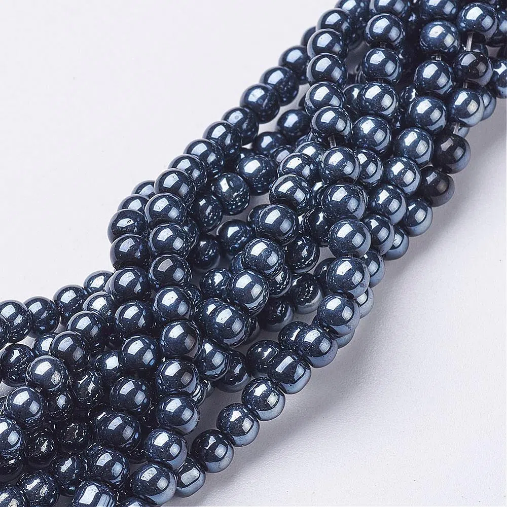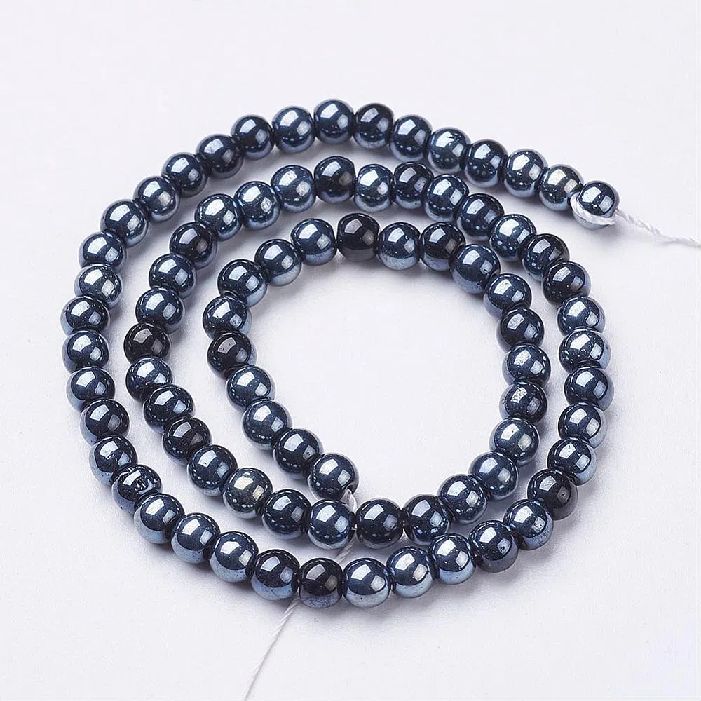 Margele de sticla sferice, culoare - negru cu efect AB, dimensiune - 4 mm, diametru gaura - 1 mm.