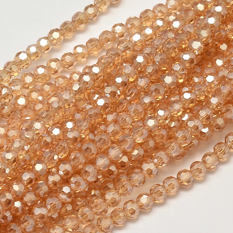 Margele de sticla sferice fatetate, culoare - maro deschis electroplacat.