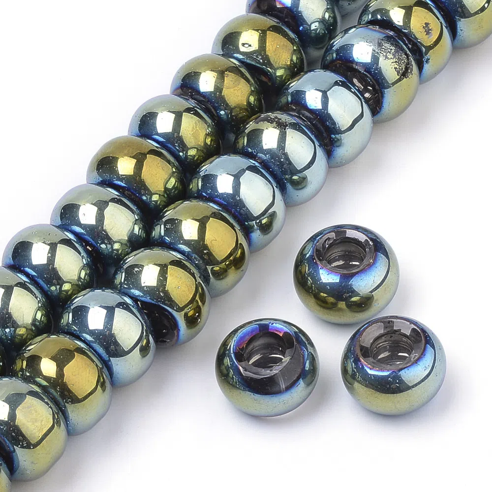 Margele din sticla, tip inel, culoare - rainbow, dimensiune - 15x10 mm, diametru gaura - 5 mm.