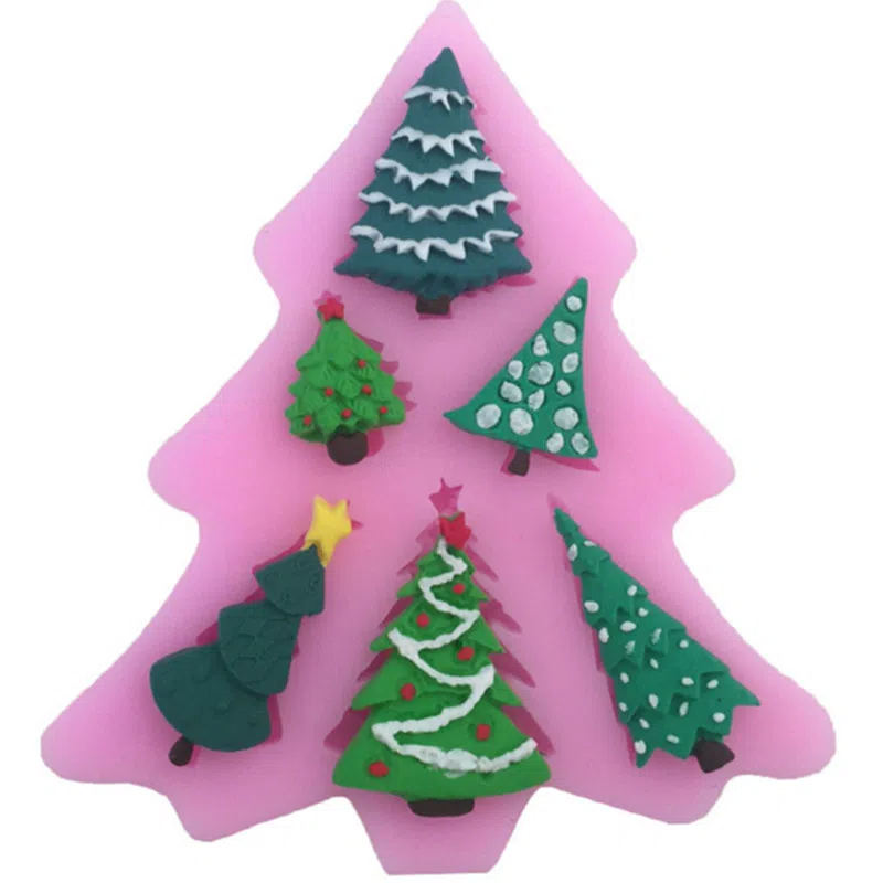 Matrita silicon pentru fimos si rasina, 6 forme de bradut, ideala pentru turnarea formelor din rasina.