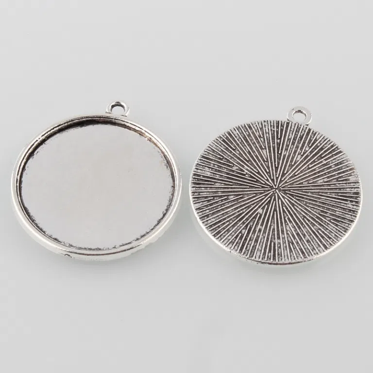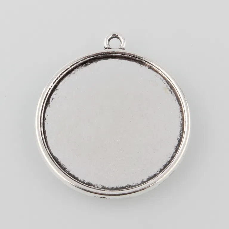 Pandantiv cu baza cabochon - argintiu antic, dimensiune - 31 x 27 mm, grosime - 2 mm, diametru gaura - 1.5 mm. Diametrul interior cabochon - 25 mm.