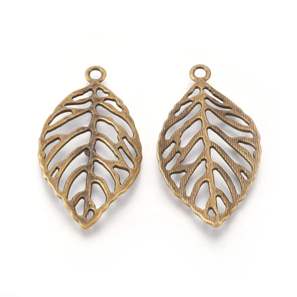 Pandantiv sub forma de frunza filigranata, culoare - bronz antic.