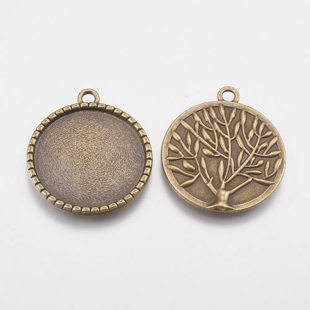 Pandantiv metalic, sub forma de copacul vietii, cu baza cabochon, platou de 25 mm, culoare - bronz.