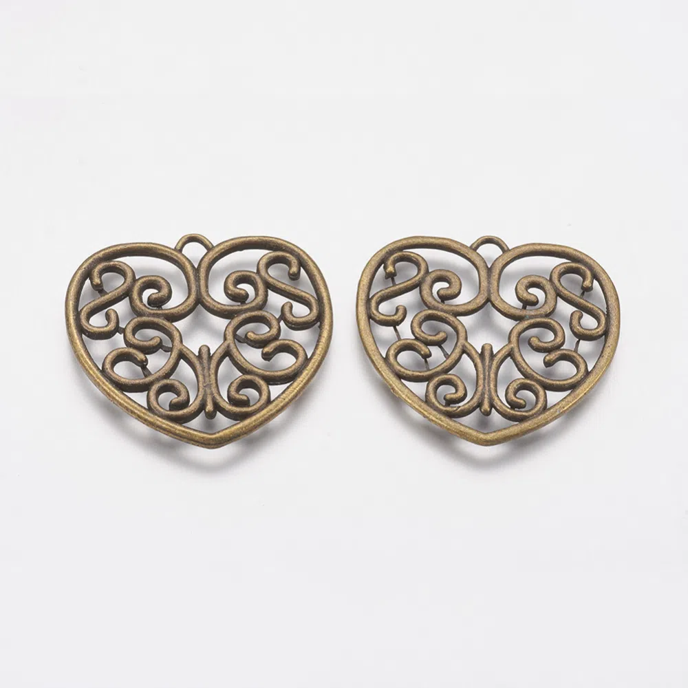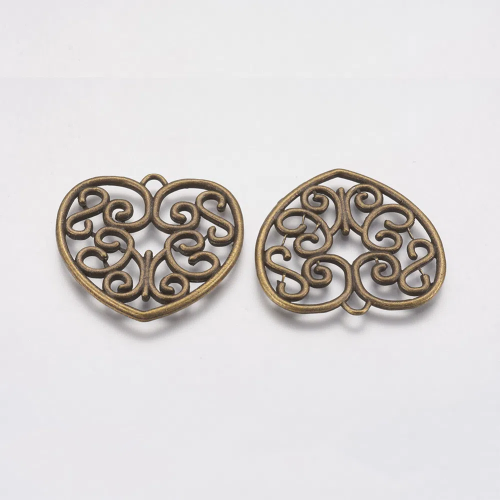 Pandantiv metalic, bronz, inima filigranata.