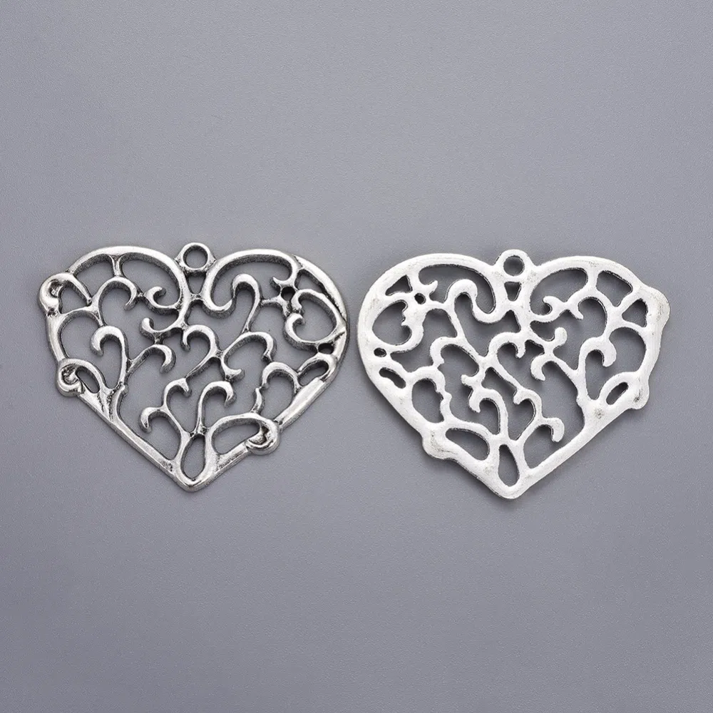 Pandantiv din metalic, sub forma deinima filigranata, culoare - argintiu inchis.