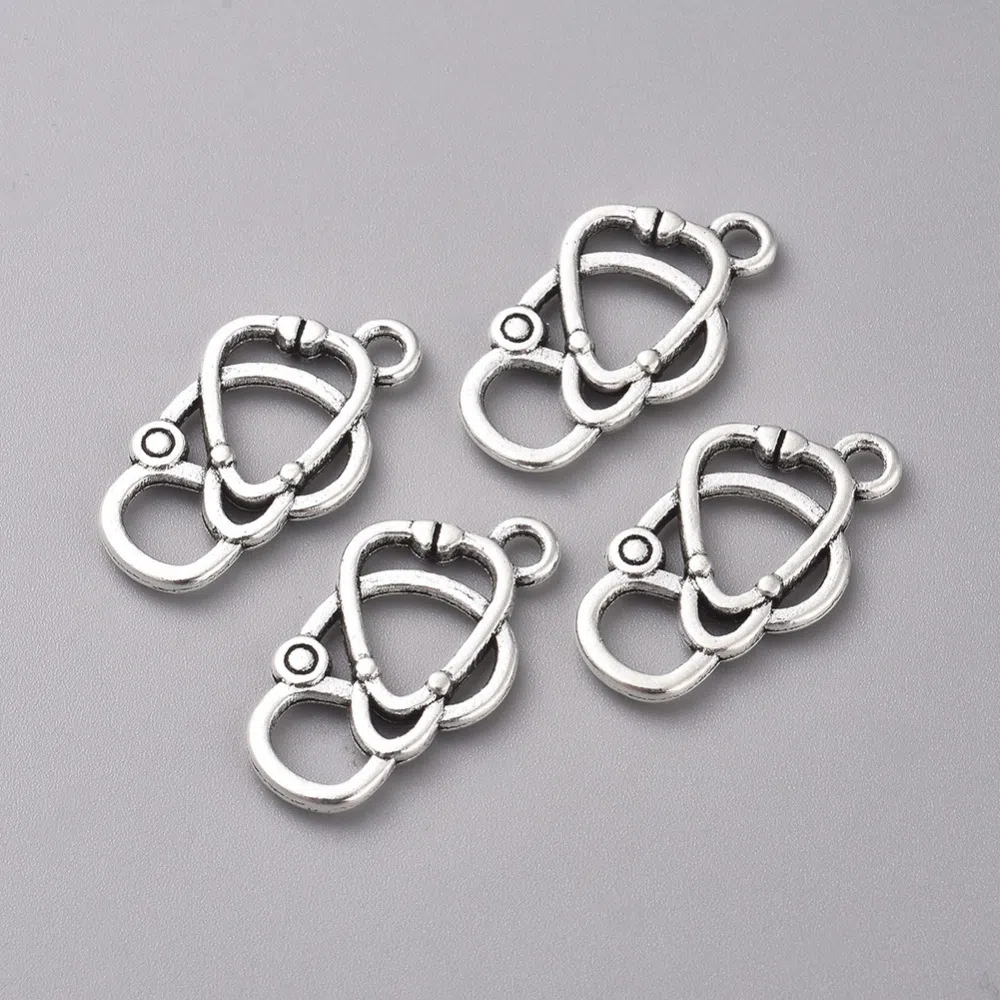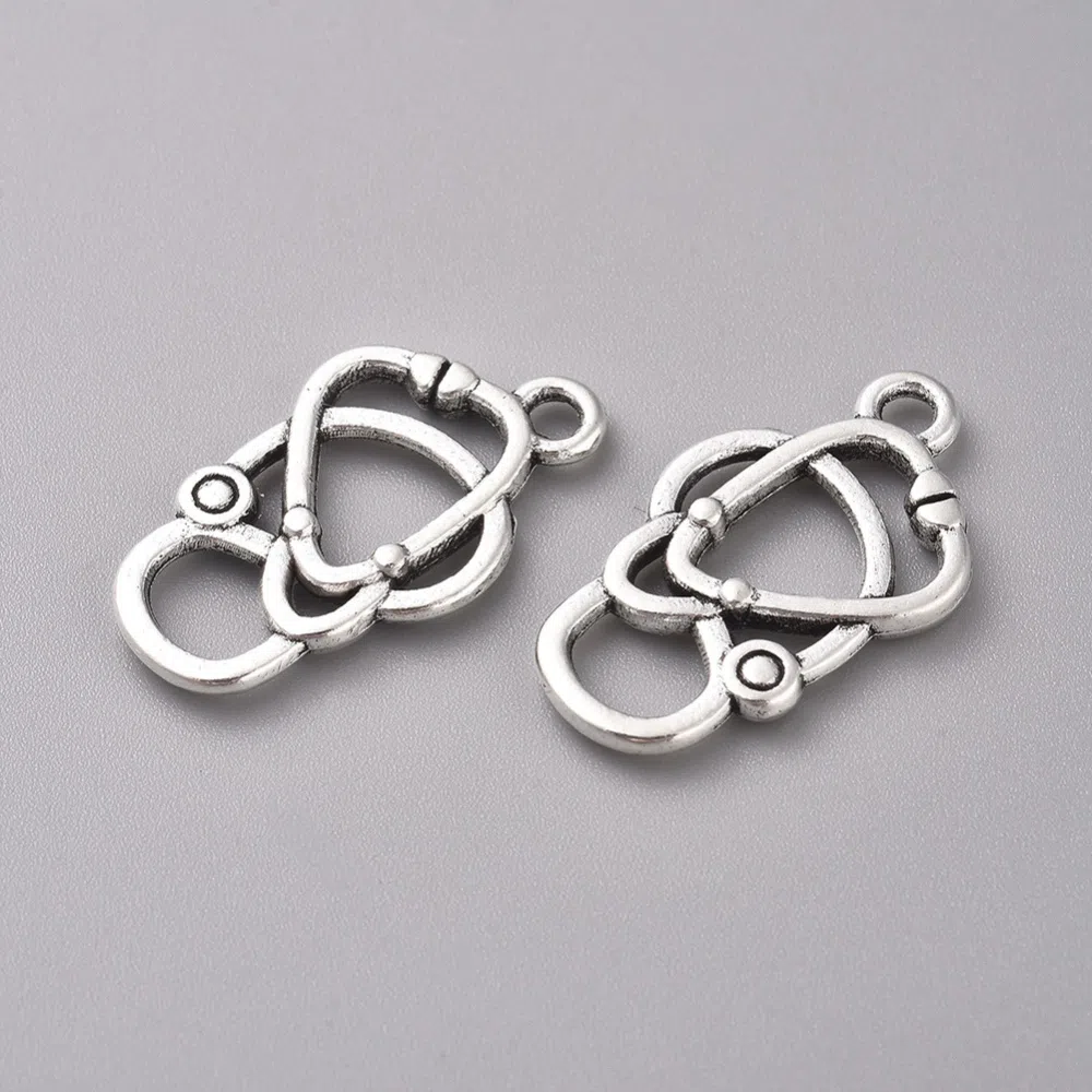 Pandantiv metalic, stetoscop, culoare - argintiu antic.