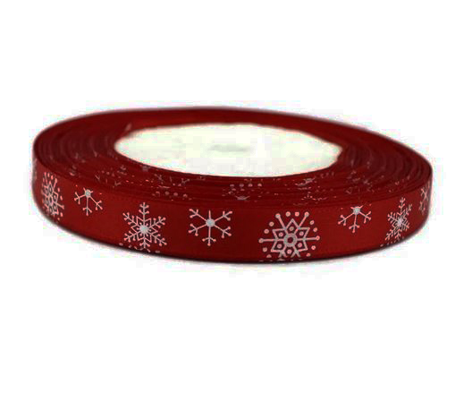 Panglica satin, rosu inchis cu model de Craciun, dimensiune - 10 mm.