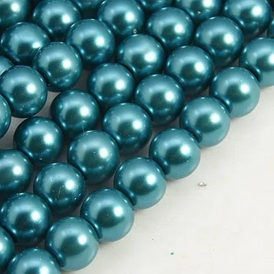 Perle din sticla vopsite, rotunde, culoare - turcoaz inchis, diametru - 8 mm, diametru gaura - 1 mm.