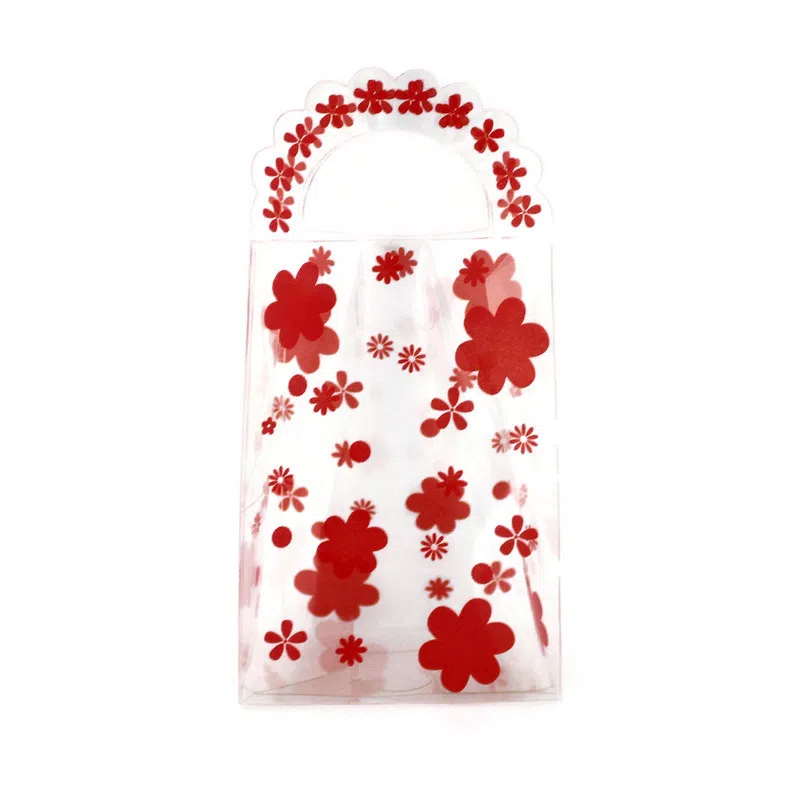 Punguta acetofan cu autoformare, transparenta cu floricele rosii