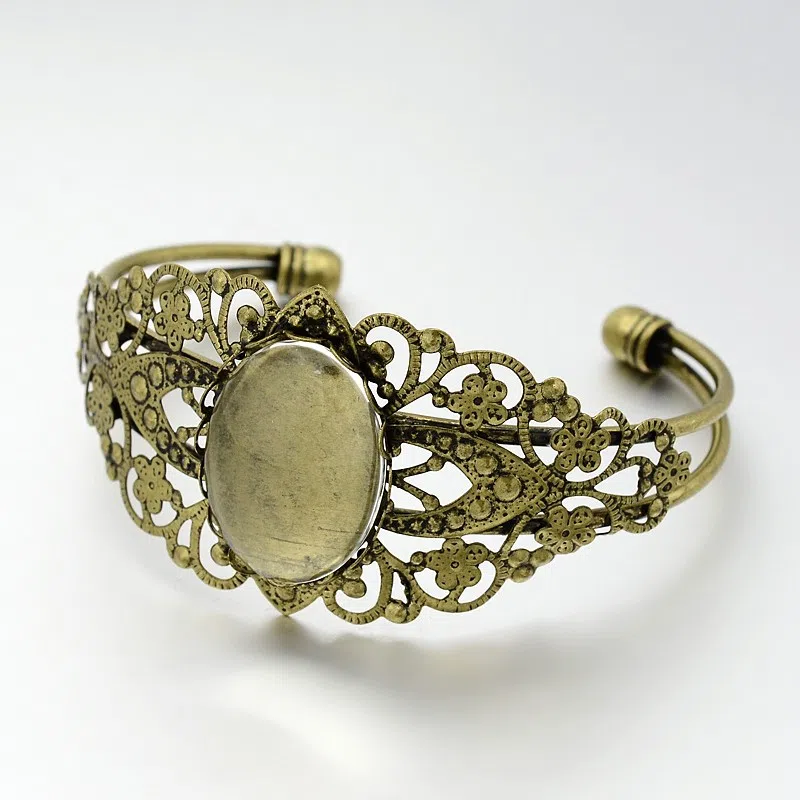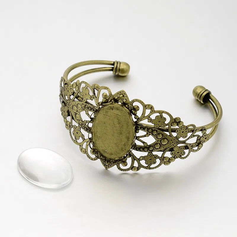 Set baza fixa pentru bratara bronz antic si cabochon oval sticla transparent.