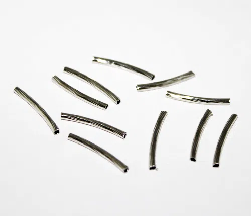 Tuburi curbate zimtate. Culoare - argintiu inchis. Dimensiune - 19 mm, grosime - 2 mm, gaura - 1 mm.