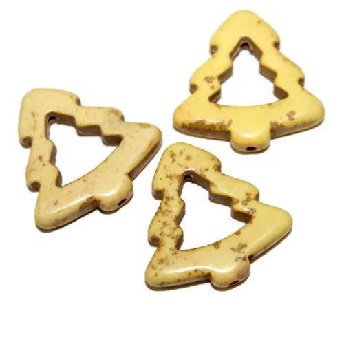 Pietre semipretioase - turcoaz sintetic in forma de bradut, dimensiune - 29 x 29 mm, grosime - 6 mm, culoare - galben, diametru gaura - 1 mm.